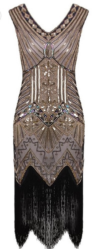 VTG Cassandra Stone Womens Dress Sz 10 Beaded Gala Retro Roaring 20s Black Tie