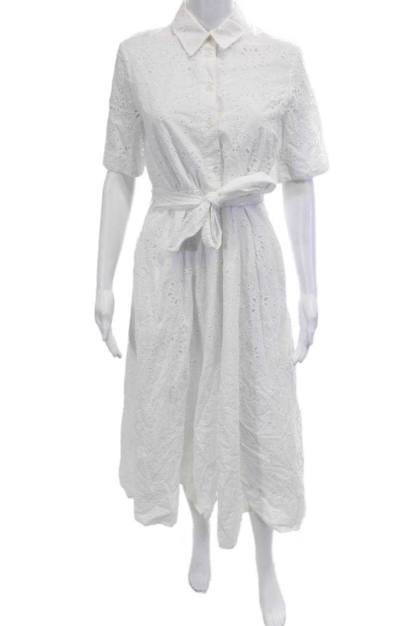 Zara Womens White Cotton Shirt Dress Collared Short Sleeve Full-Length Size S