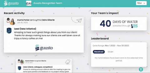 - Built-in rewards marketplace — Employees can redeem recognition points for real gifts and experiences. They can pick whatever reward suits them personally.