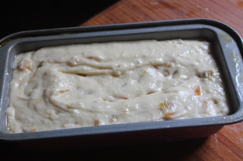 Preheat oven to 180 degree C. Grease a 21x11cm (8½ x 4½ in) loaf pan well and sprinkle flour over it. You can line it with baking paper and grease the paper as well.