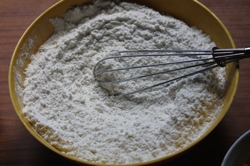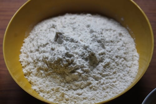 Now in a bowl, take flour, baking powder and salt. mix well and set aside.