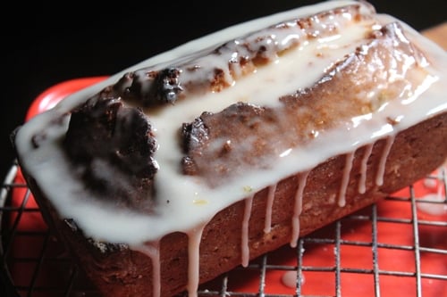 For Glaze, mix icing sugar with orange juice till it is thick and smooth. Now pour the glaze over and let it set for 15 mins. Slice and serve.