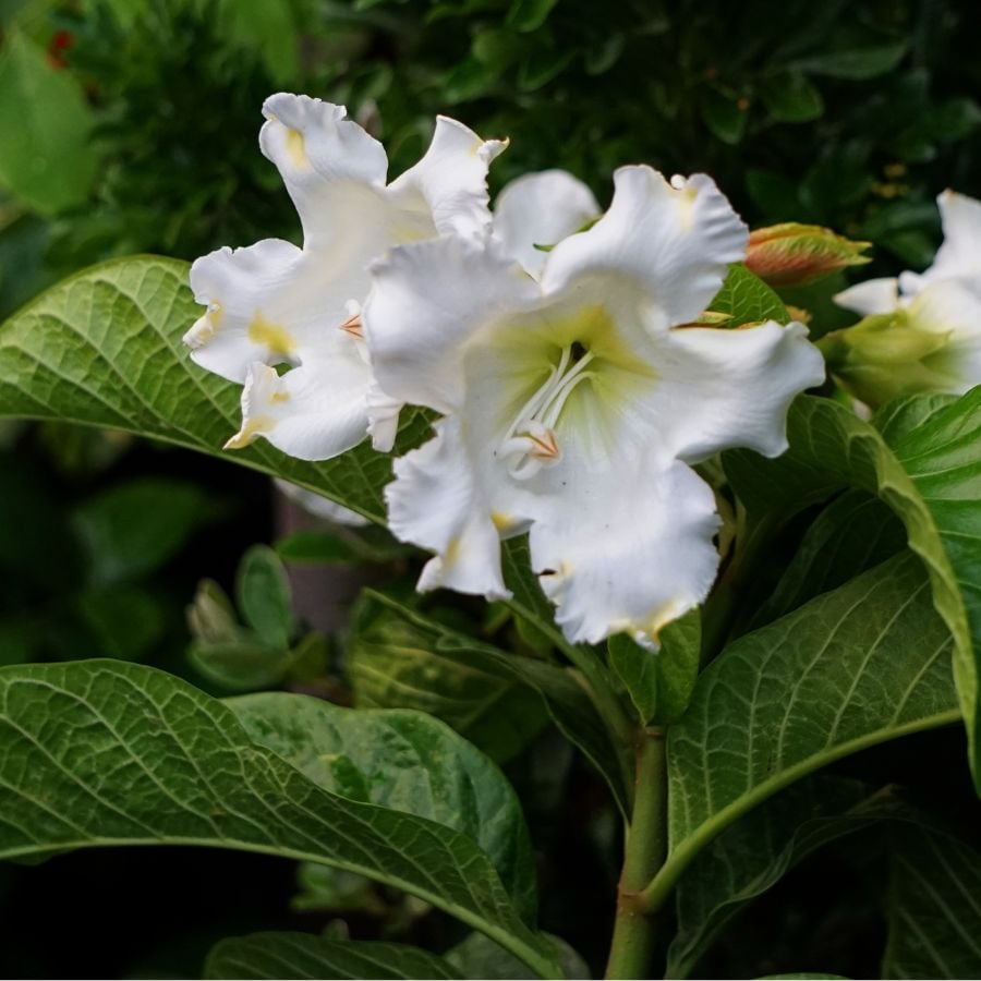 The Easter lily vine, Beaumontia grandiflora, has large, startlingly gorgeous white blossoms in clusters that resemble Easter lilies.