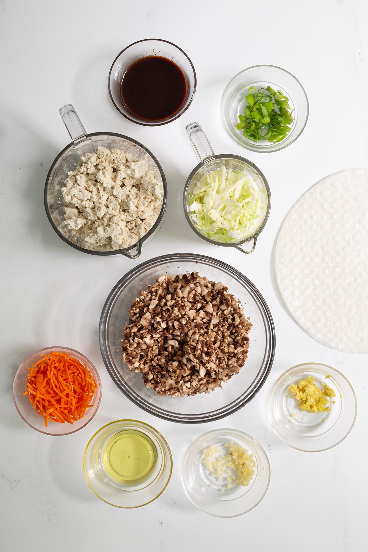 To make these tofu rice paper dumplings, here’s what you’ll need: