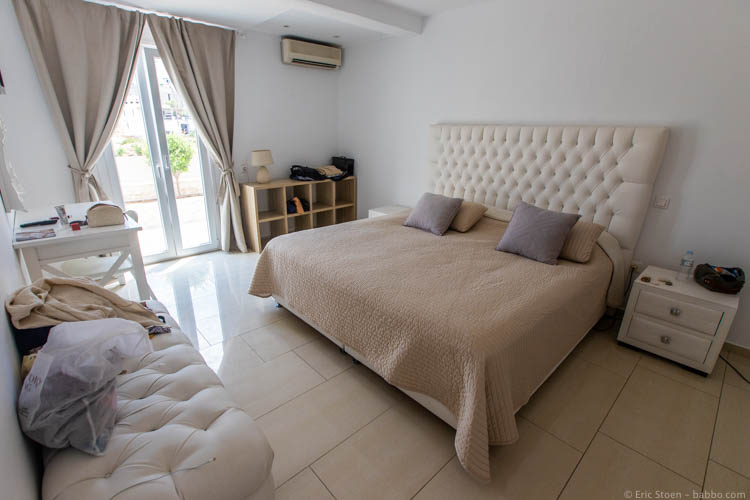 If we’re on a Greek island we want to stay in a main town with a lot of restaurant choices, easy beach access and places for the kids to roam on their own. I prefer not to rent a car if we don’t have to – we’d rather walk everywhere than deal with a small rental car (maxed out by our family of five) and parking.