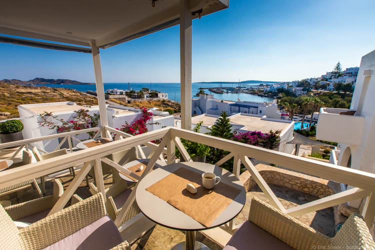 I should note that there are a lot more places to stay on both islands. On Naxos people like Agio Prokopios and Plaka Beach. On Paros, other than the two main towns, Aliki and Golden Beach are popular and, for hiking, Lefkes in the center of the island. However, that’s not us. We want to base in one place with everything walkable. If you’re fine with having a rental car and staying in a smaller beach town, you’ll have a totally different experience on both islands than we did.