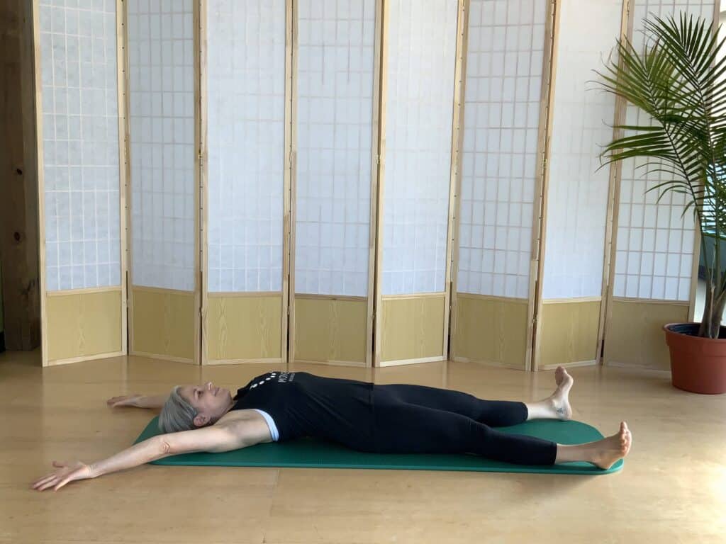 - Last, finish with one final whole body stretch on the inhale and release into the bed on the exhale.