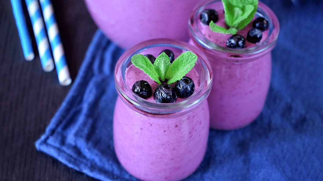 Dark-colored berries are packed with antioxidants and flavonoids, and studies have shown that regular intake of flavonoids reduces the rate of cognitive decline in older adults, making this the perfect anti-aging smoothie. A splash of cherry or pomegranate juice, or hibiscus tea, adds even more flavor, color, and nutrients. You can tailor this smoothie to your sweetness quotient and sprinkle in some medicinal mushroom powder for more brain boost. Drink this smoothie and you just might live forever. And it tastes amazing! Serves two.