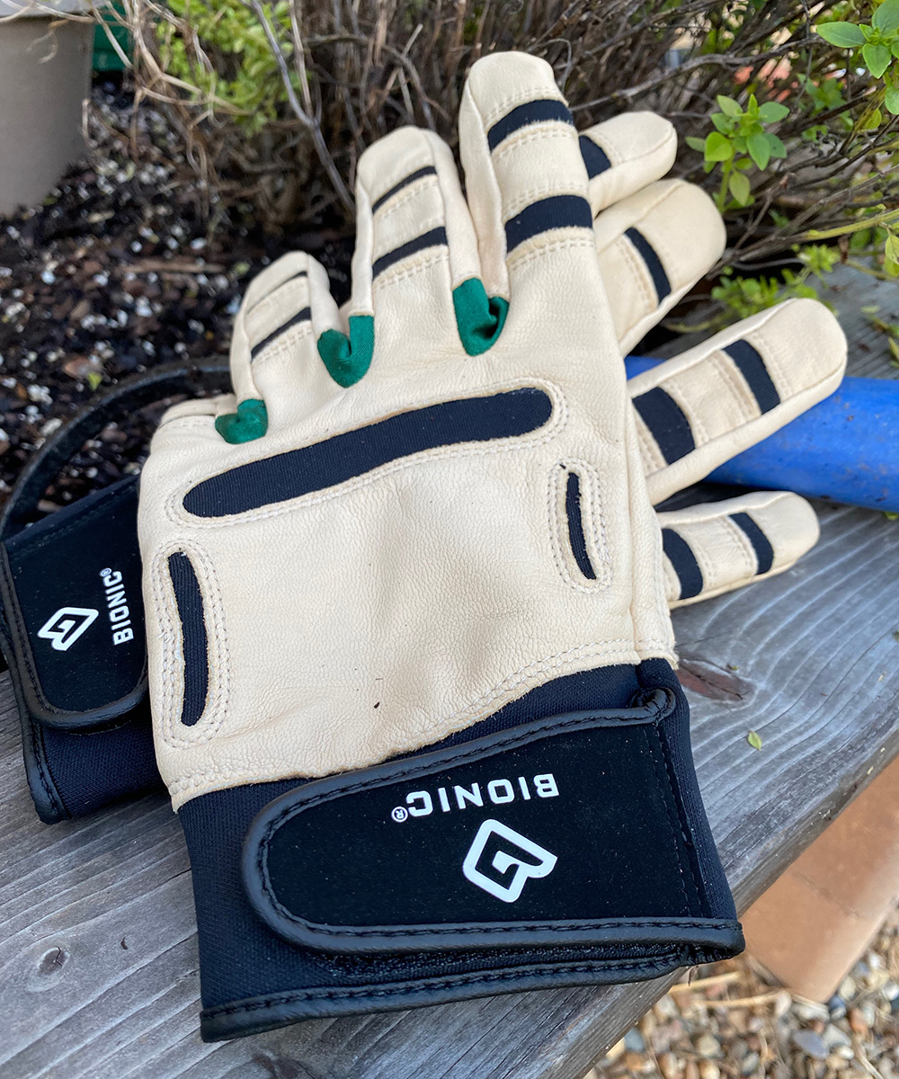 Life is too short, and I garden too much to waste my time on cheapo gloves. They need to be comfortable, fit well, and last a season or more. Bionic is my go-to glove. Coming in at about $40 a pair, they might seem like a luxury item to most gardeners. However, over the last six years I have only worn out three pairs. Trust me, I put them to the test. I wear them when I am running a chain saw and when I’m pulling weeds. I tend to wear the fingertips of gloves out quickly. These have silicone finger pads for added fingertip longevity. Between each finger is flexible fabric that makes hand movement natural. A flexible Velcro wrist closure keeps dirt out of the gloves while you’re working.