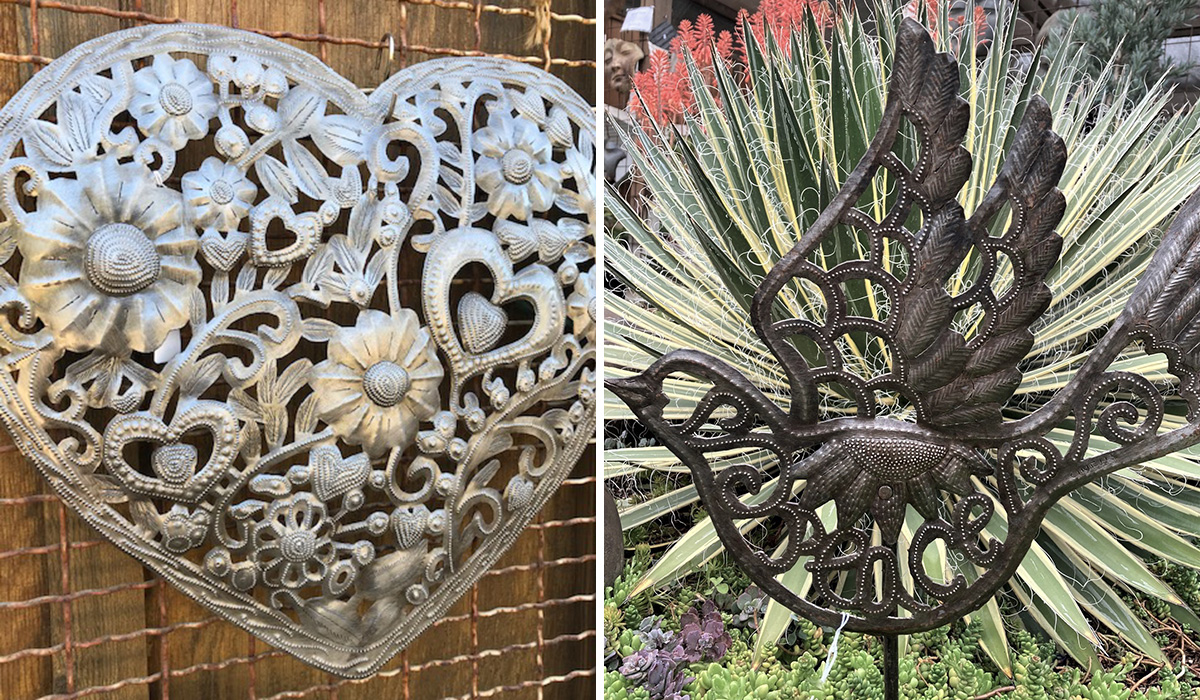 Beyond Borders Fair Trade helps the talented metal artists it works with in the town of Croix des Bouquets, Haiti, to better their lives, alleviate poverty, and improve the Haitian economy—all through sharing their beautiful metal artwork with appreciative homeowners and gardeners all over the world. Using discarded oil barrels, hammers, chisels, and nails, each artist puts their gifts to work and creates gorgeous pieces ranging from small garden stakes for a flower border to large, collectible wall or fence pieces perfect for either indoors or out. There are styles, sizes, and price points to suit every friend or family member this holiday season. The hardest part is choosing which beautiful piece to give or to put on your own wishlist!