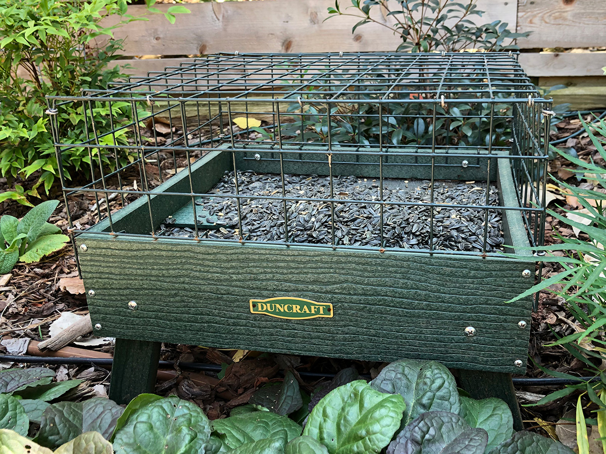 This feeder protects small birds while they eat