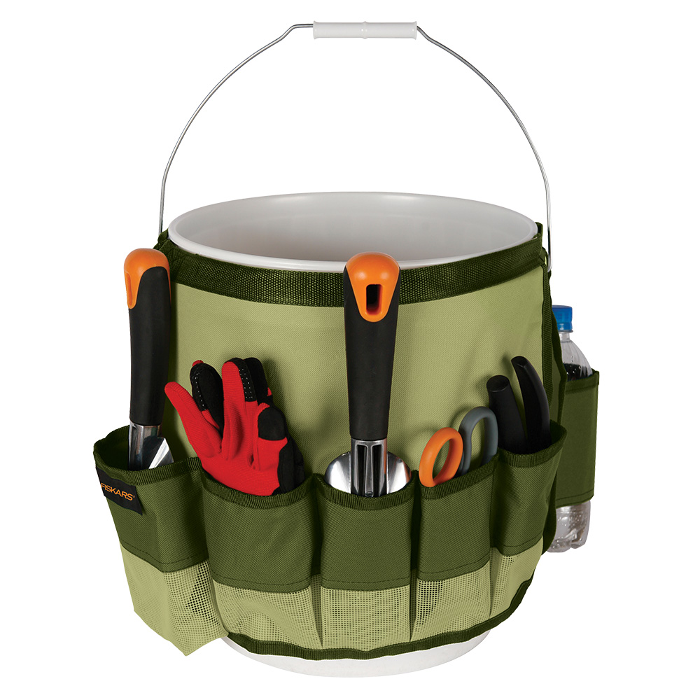 Fitting snuggly on a standard 5-gallon bucket, this amazing garden bucket caddy from Fiskars will free up the internal space of the bucket while keeping tools and supplies accessible and organized on the exterior of the bucket. Weatherproof and durable, this accessory is constructed of easy-to-clean canvas and includes nine deep pockets and two “pencil pockets.” The larger pockets can accommodate a wide range of hand tools such as a trowel, weeding tool, and hand pruners, as well as items such as a cell phone, sunscreen bottle, insect repellant, or a notepad. Customize your caddy as you see fit! Backed by a lifetime warranty, this bucket caddy is a welcome and appreciated product that sees increasing popularity with the efficient and organized gardener (and those who are still striving for efficiency).