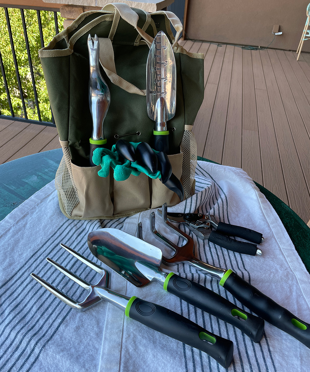 This beginning gardener’s kit from California Picnic is good fun and a great gift for young gardeners, with its Wolverine-type claw gloves. Waterproof with plastic claw fingertips on one glove, the pair helps with digging out planting holes. Many gardeners wear out the fingers on gardening gloves, so this would also be perfect for any plantsperson on your list. The bright purple color could even help with finding the glove that always goes missing while working. Tools—including claw, rake, trowel, weeder, and even pruners—are all included in a tote that can carry other gardening bits and bobs.