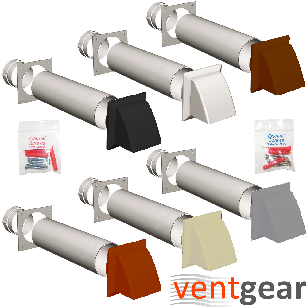 100mm round 4″ cowl rigid through wall tumble dryer vent kit & stainless screws