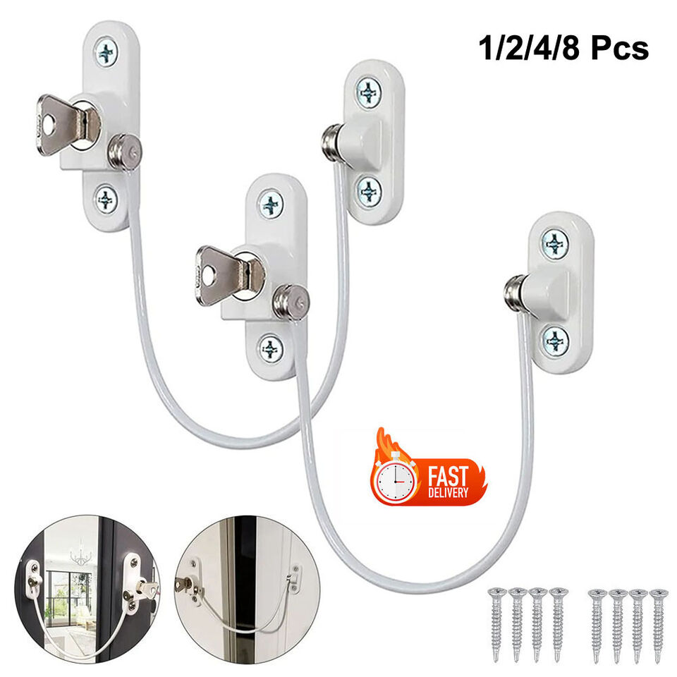 1/8x Window Door Restrictor Child Baby Safety Security Lock Cable Catch Wire Key