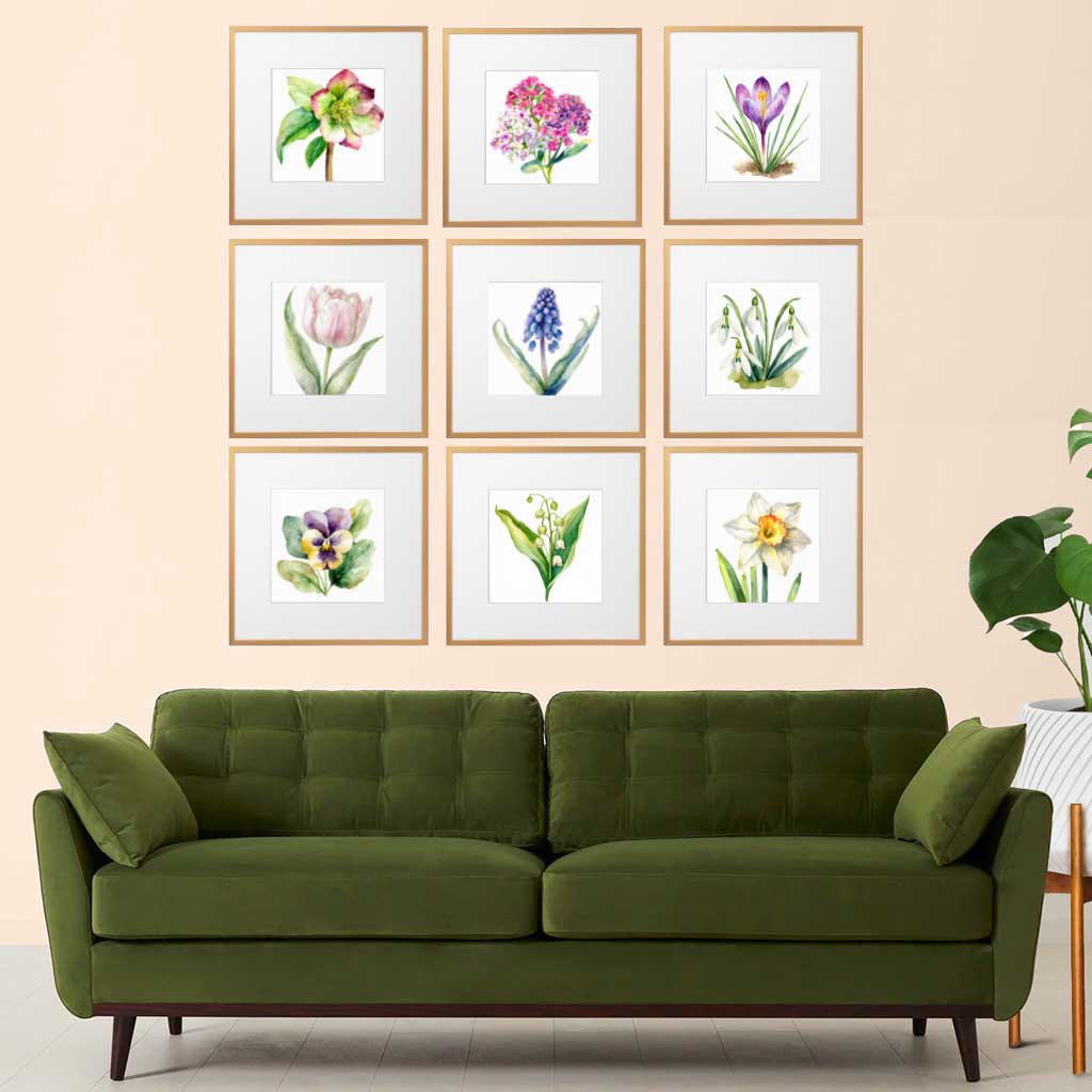 Simply click on the link below and download the zip file containing the 9 free botanical floral drawings. The print size is around 17cm square and the files are high resolution – 300dpi. I’ve saved the images onto A4, so you can print, cut and frame the square images.