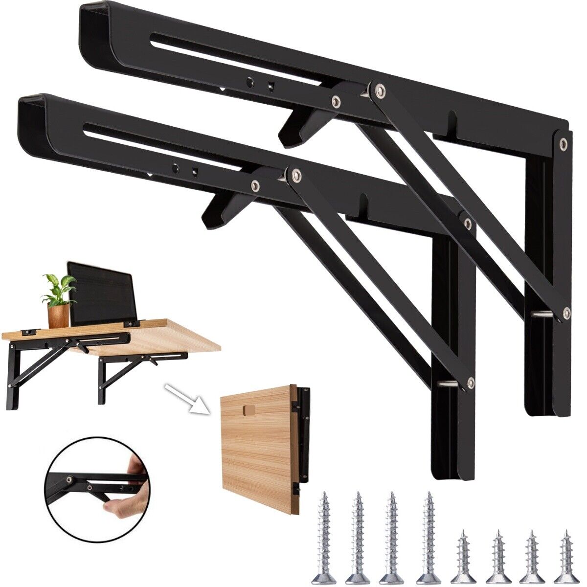 2-20x Folding Heavy Duty Shelf Bracket Triangle Bench Mounted Table Wall Hinges