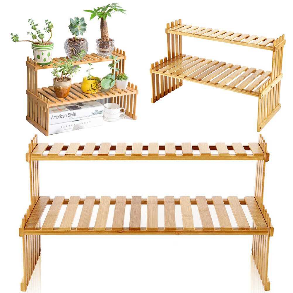 2 Tier Table Bookshelf Storage Rack Wooden Plant Holder Shelf Study Organizer
