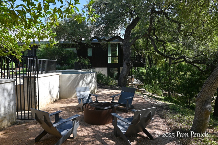 Climbing up to the house level, you reach a fire pit patio…