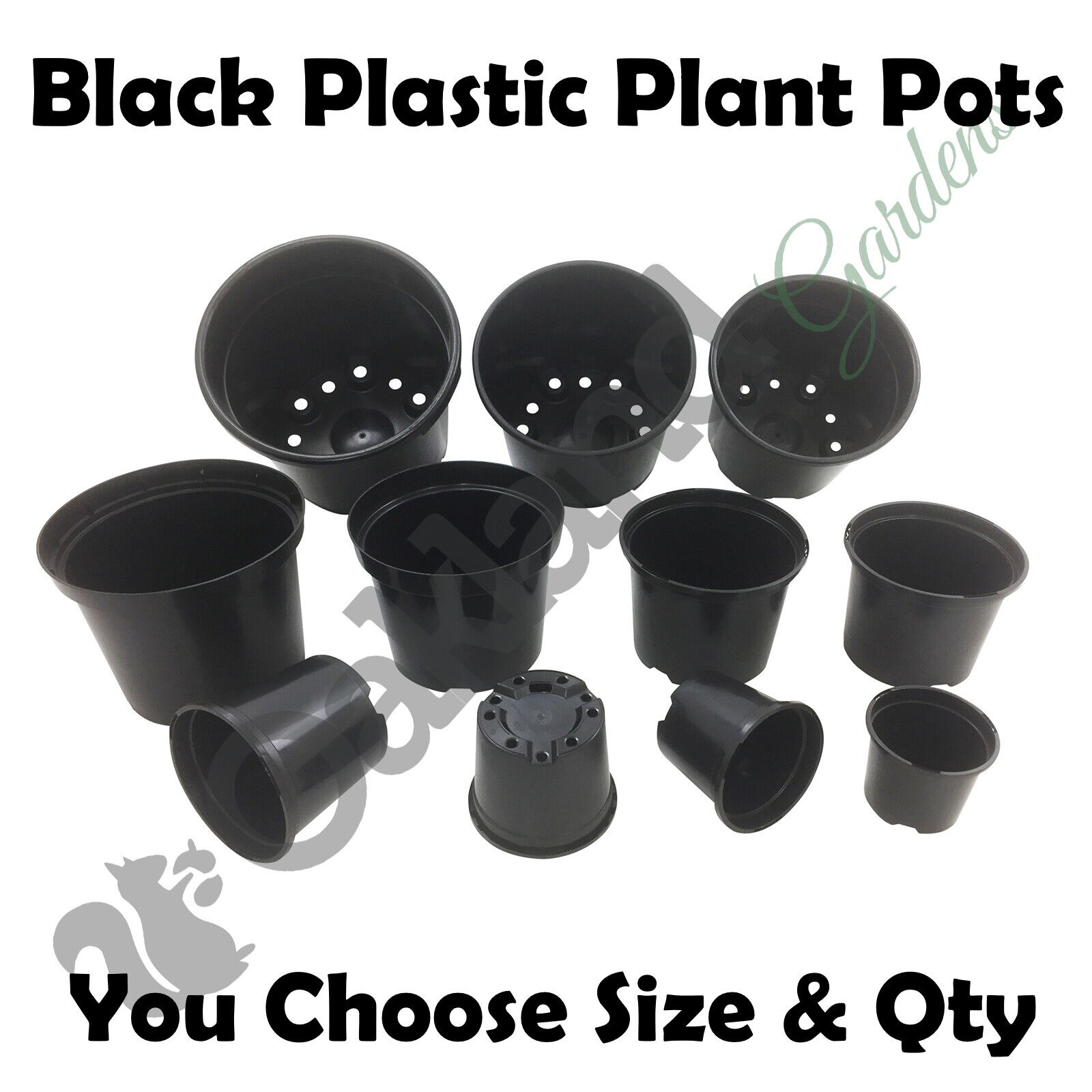Black Plastic Plant Pots 1 2 3 4 5 7.5 10 12 15 20 Litre Large Flower Pot Strong