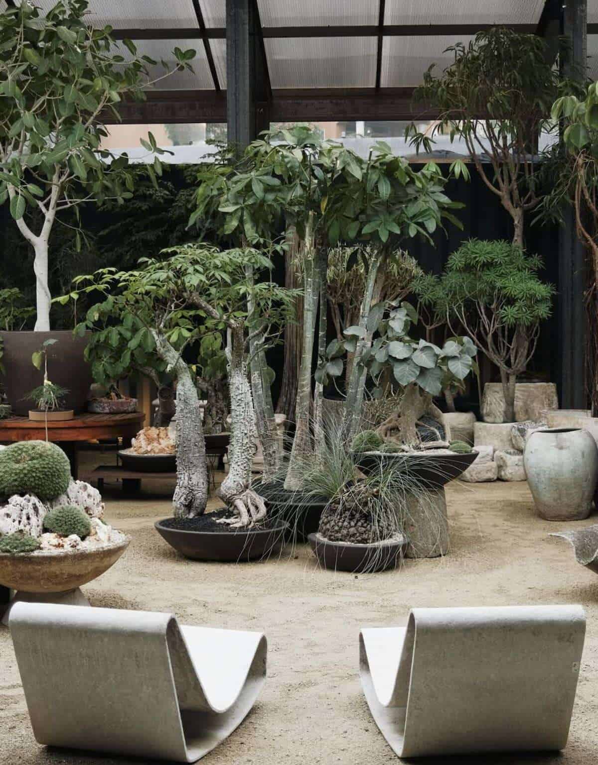 Rob: Brachychiton rupestris [above] is the one I like to use a lot. They always have a really interesting twisted trunk and a root system below the soil. And over time you’re able to expose more of the root, and especially I love when they’re potbound. So when one of these trees has been grown in a nursery pot for years, they’ll sort of start to twist on themselves. And then when you expose that, there’s all sorts of interesting things happening and you don’t really know—and that’s the beauty of it, too, is you don’t really know until you uproot some of these things and play around with it.