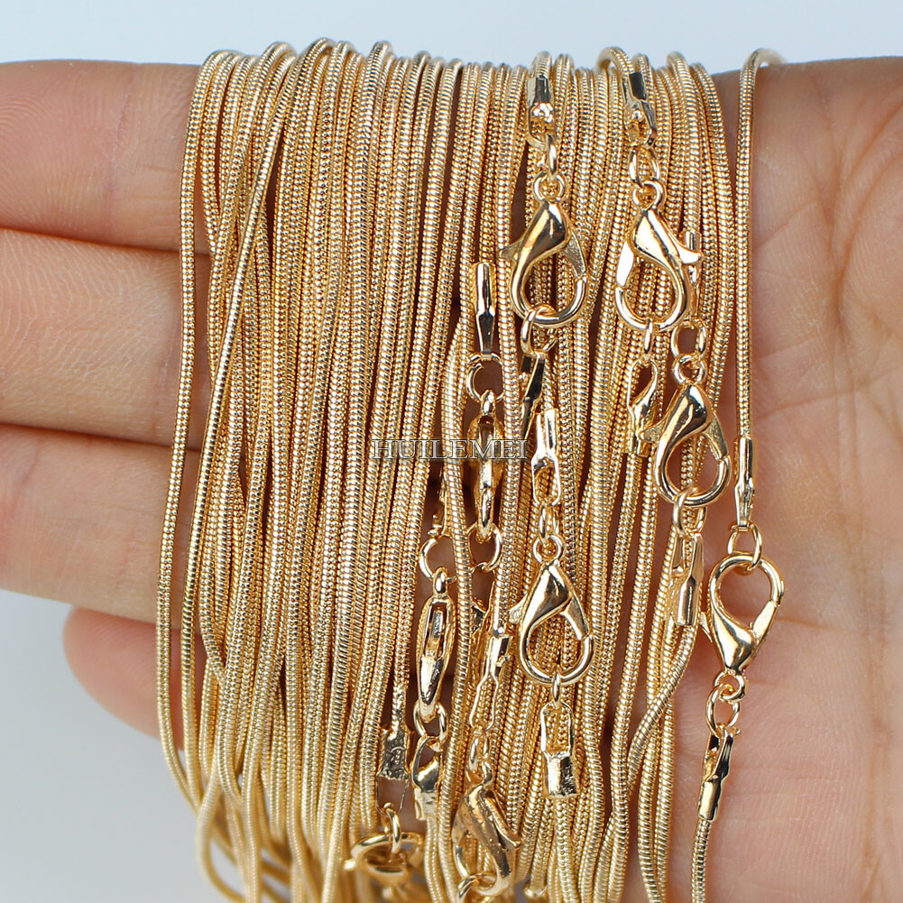 10/20/50pcs KC Gold Colour 1.2mm Snake Chain Necklaces for Women 16″ 18″ 20″ 24″