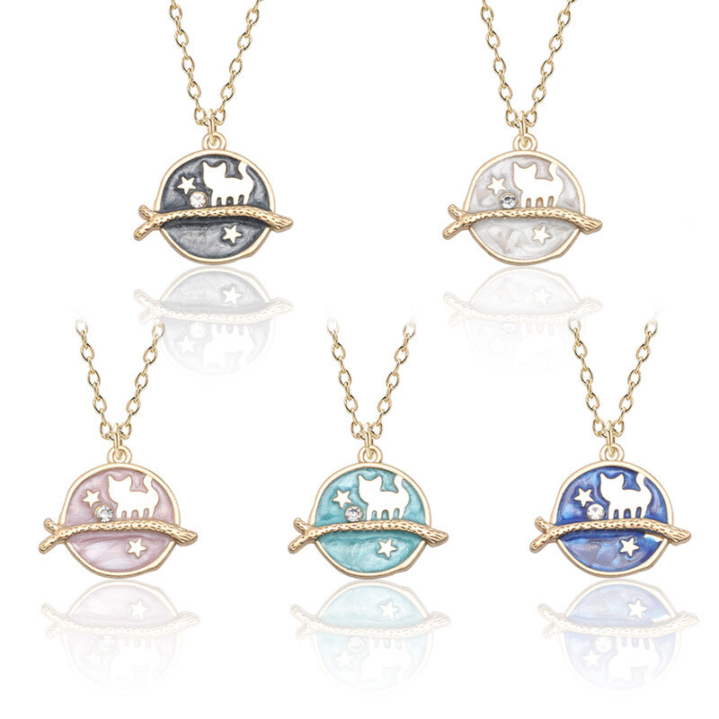 925 Silver Pated Cute Cat Moon Star Walking Friend Heart Necklace Pendants Gift