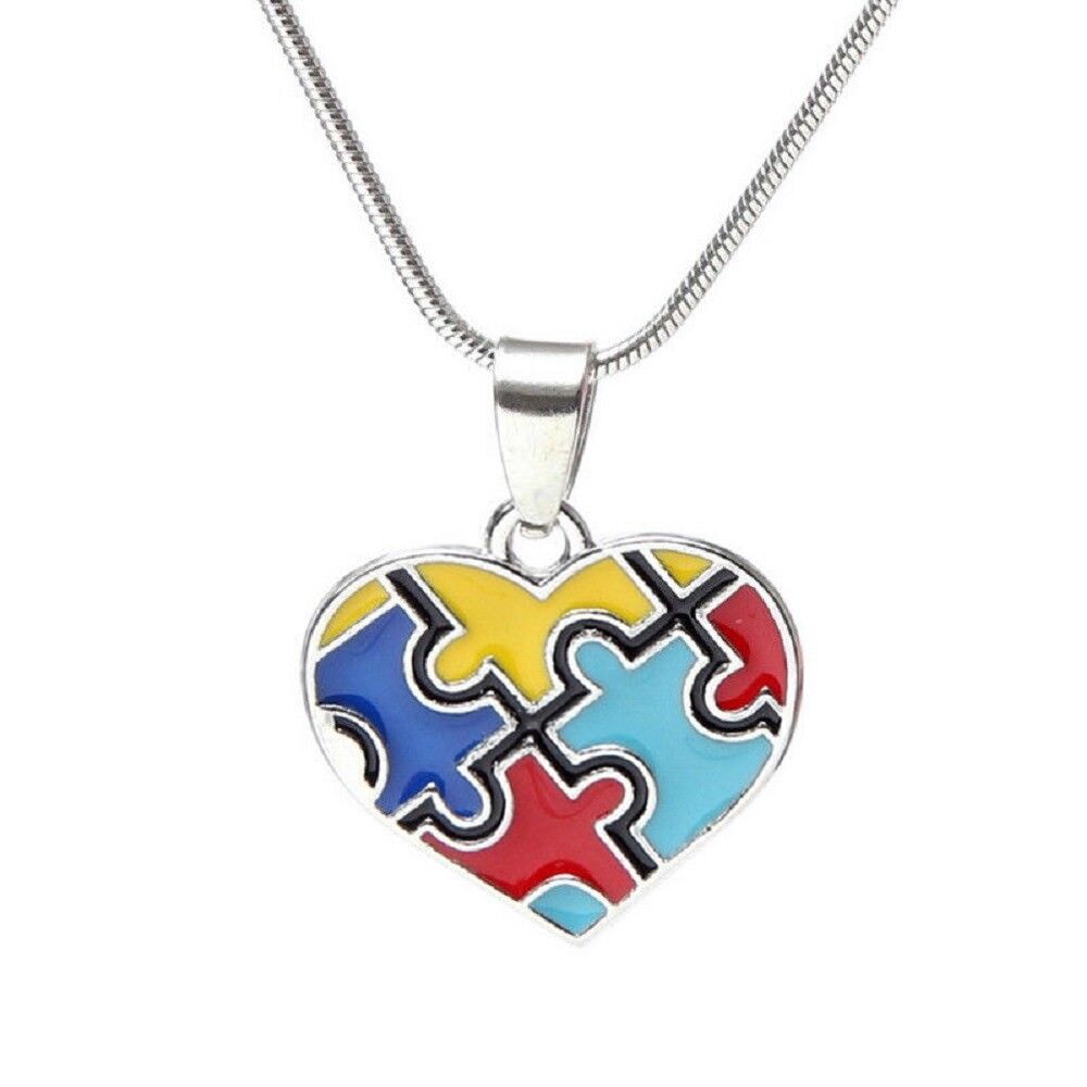 Autism Awareness Necklace Heart Bright Puzzle Piece Pendant Charms Jewellery UK