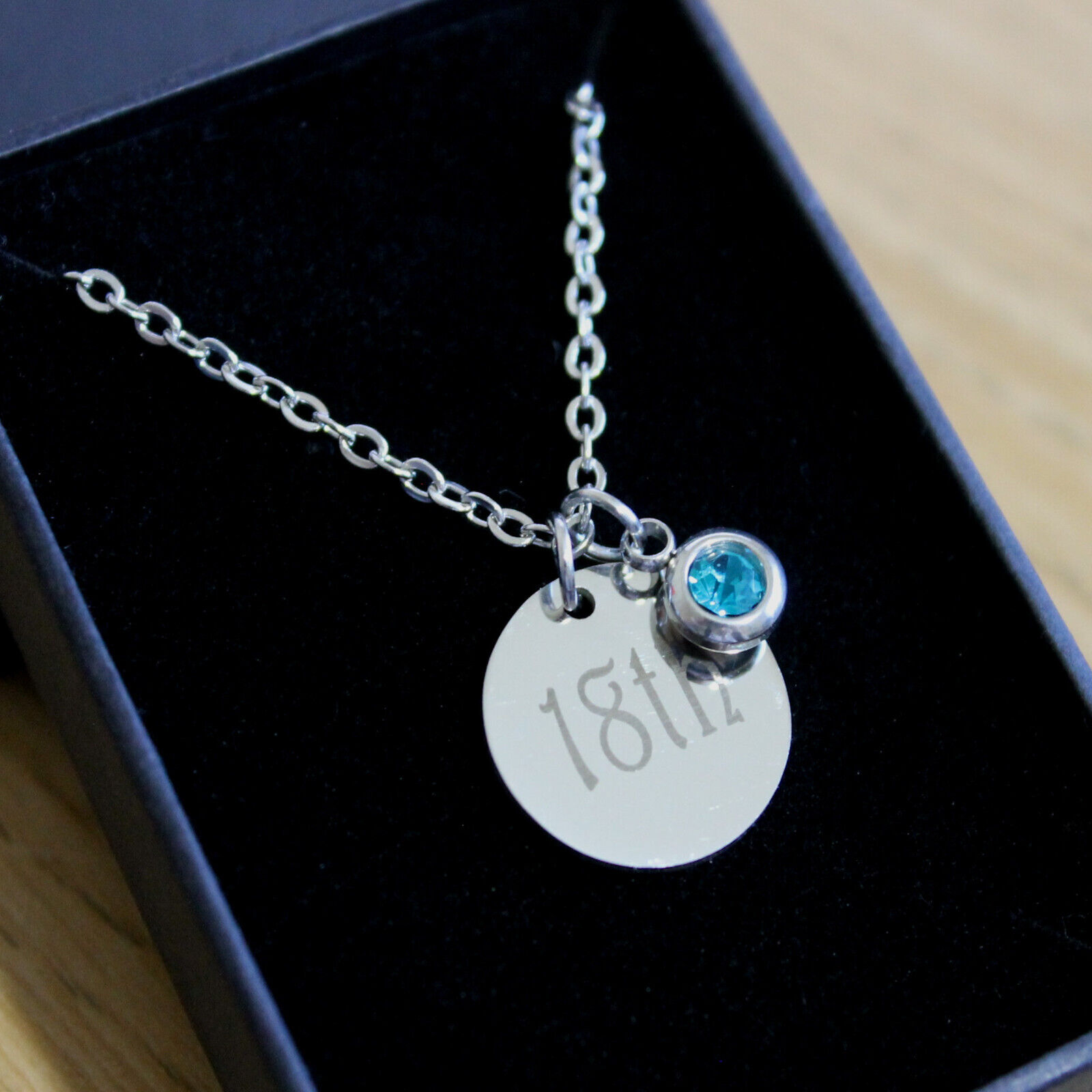 Birthstone Necklace Engraved Disc 13th 16th 18th 21st Personalised Birthday Gift
