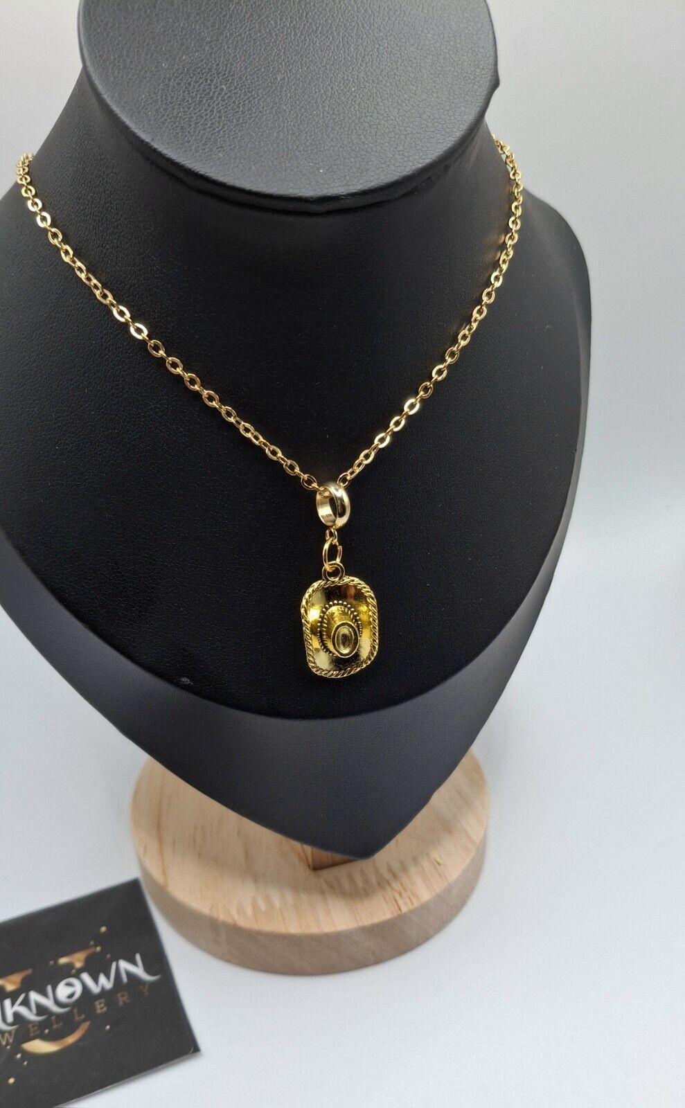 NEW Cowboy Cowgirl Hat Stenson Charm Pendant Gold Necklace Jewellery Western