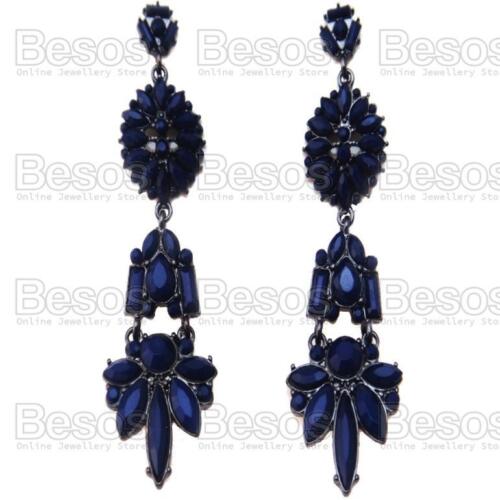 ORNATE long NAVY BLUE gothic CHANDELIER EARRINGS black VICTORIAN ANTIQUE STYLE