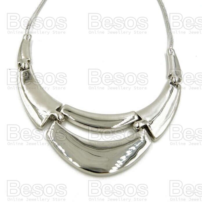 STATEMENT bib COLLAR NECKLACE UK gift box SHINY SILVER FASHION RHODIUM FINISH