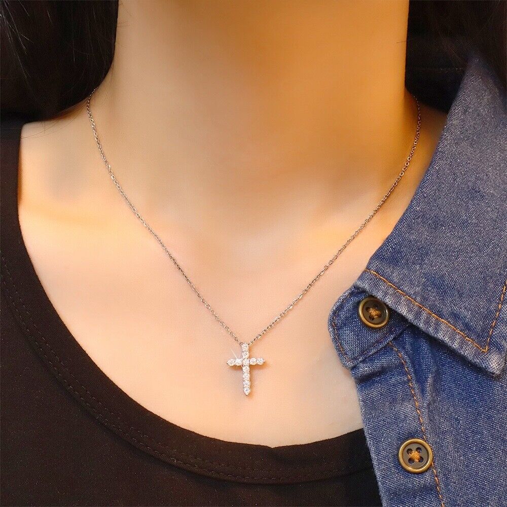 Stunning Crystal Cross Pendant Necklace 925 Sterling Silver Women Girls Gift UK