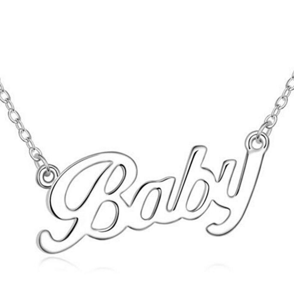 Women Baby Letter Choker Necklace Gold/Silver Alloy Pendant Chain Jewelry Gift