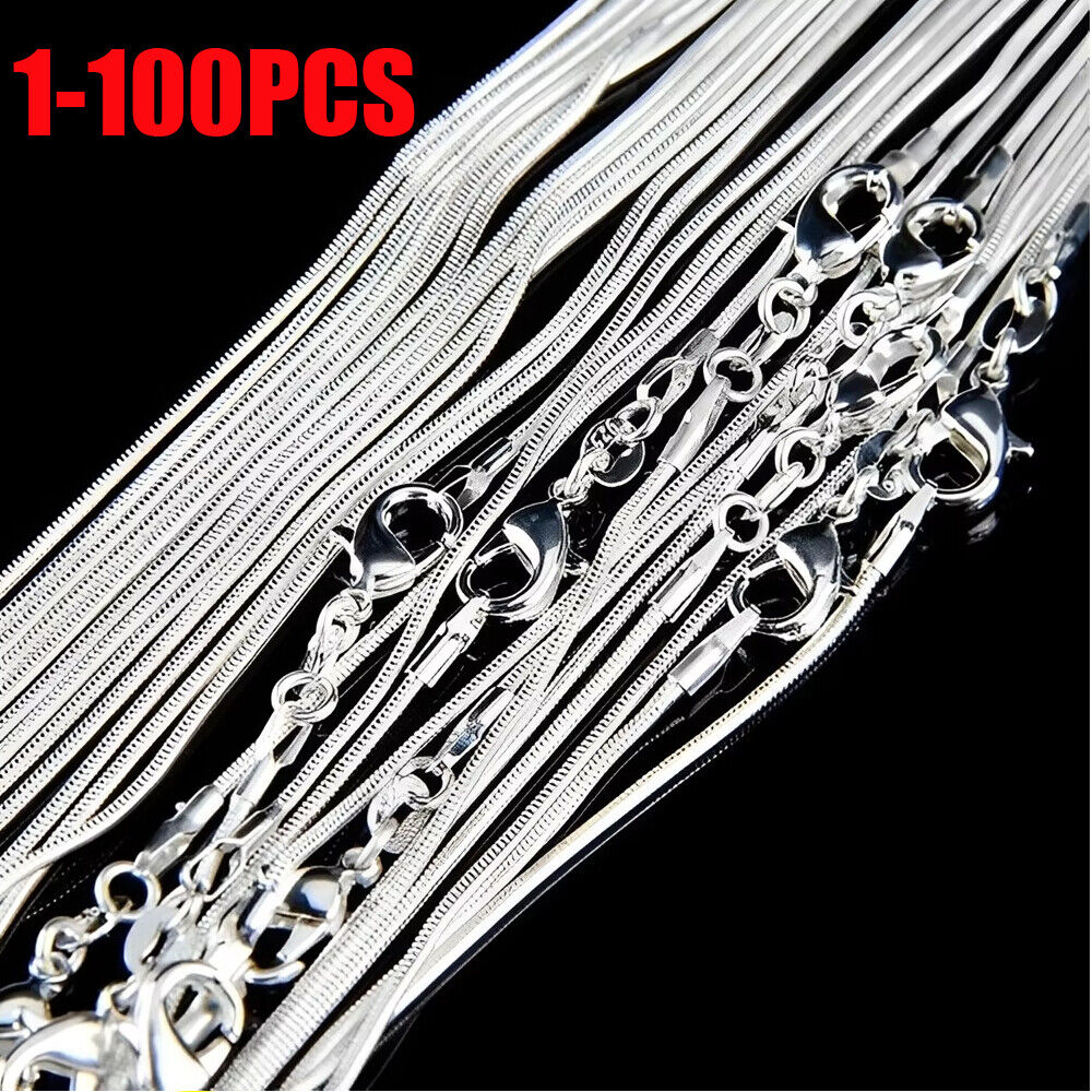 100pcs 925 Sterling Silver plated 1MM Snake Chain Necklace 16/18/20/22/24/30inch