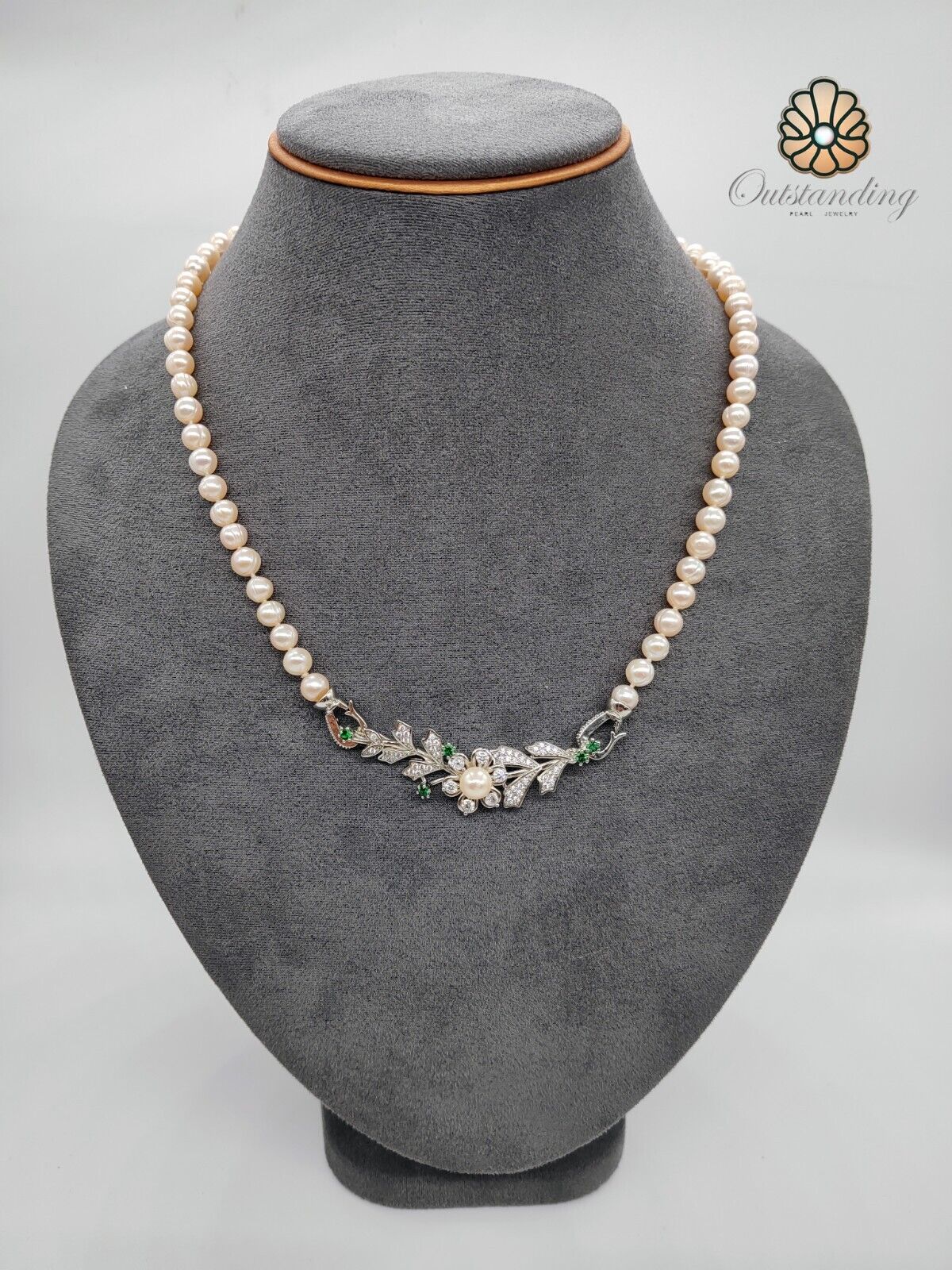 17″ Natural Sea Cream White 7mm Pearl Necklace 9ct White Gold Christmas Gift