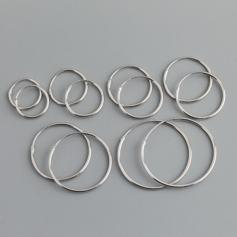 18CT WHITE GOLD on Silver SLEEPER HOOP EARRINGS – 10mm / 12mm / 14mm /20mm/40mm