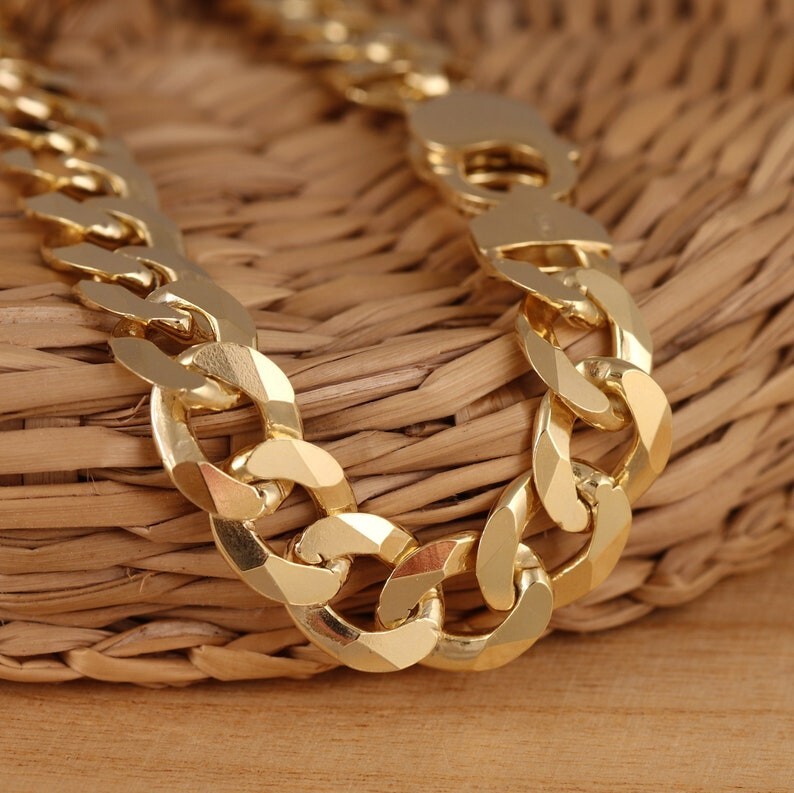 18K Gold Plated Cube Curb Chain 925 Sterling Silver Men & Women Necklace 16-30″