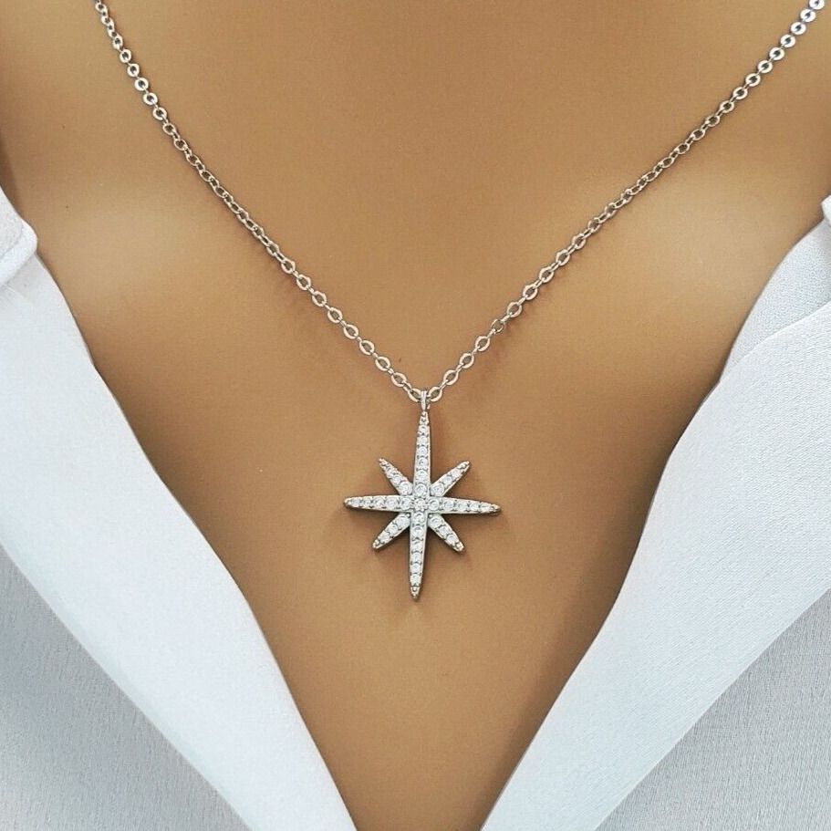 925 Sterling Silver Crystal Star Necklace Personalised Christmas Jewellery Gift