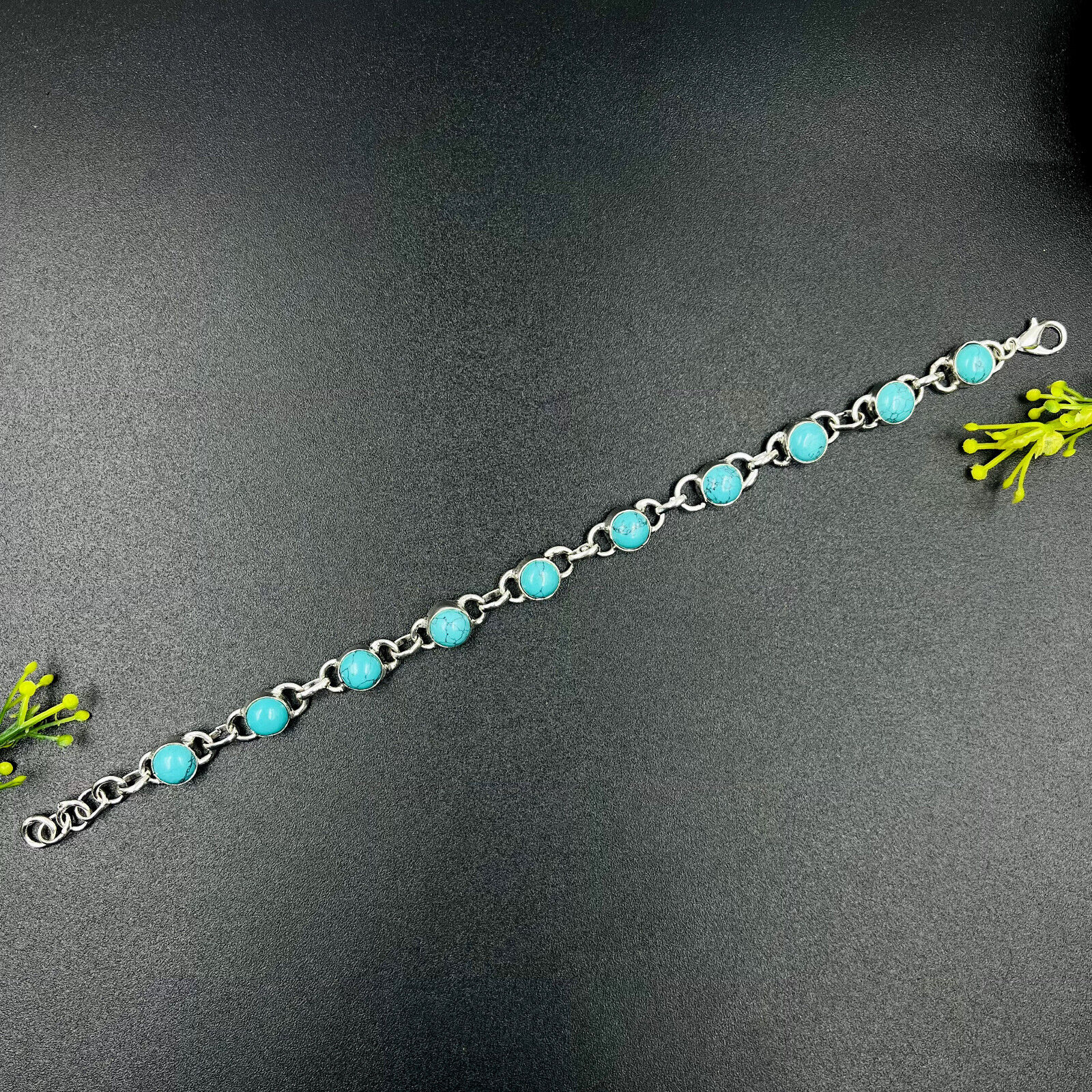 925 Sterling Silver Natural Turquoise Gemstone Handmade Jewelery Chain bracelet