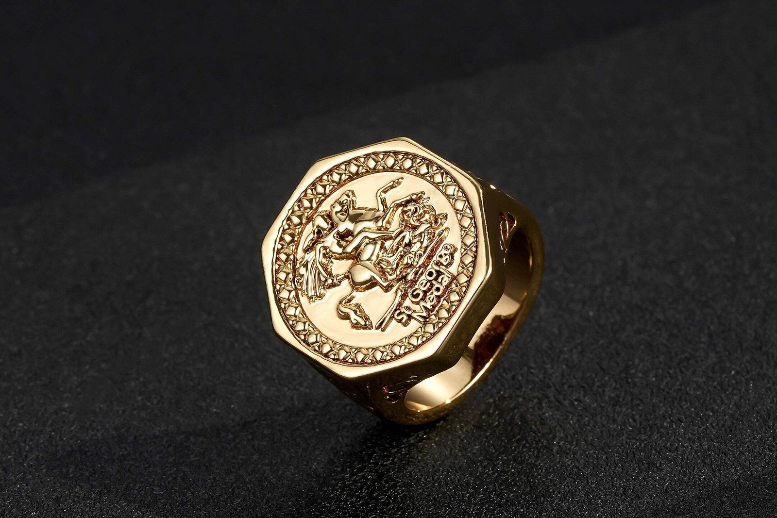 Gold Filled | Hexagon St George Sovereign Ring| Dragon Slayer Multi Size For Men