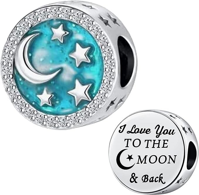 I Love You to the Moon and Back Blue Charm S925 Sterling Silver Charm for Women