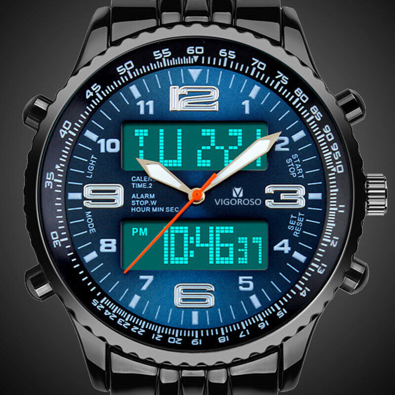 Luxury Mens Analogue Digital LED Stainless Steel Waterproof Military Sport Watch