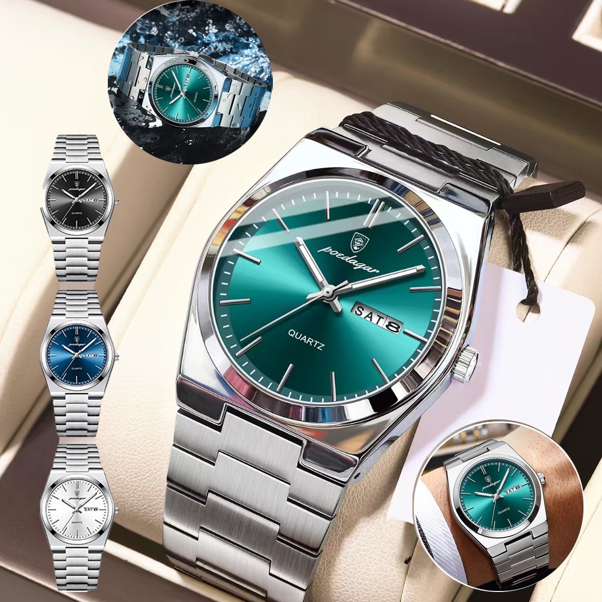 Men’s Quartz Watches 3 ATM Waterproof Luminous Date Stainless Steel Wristwatches