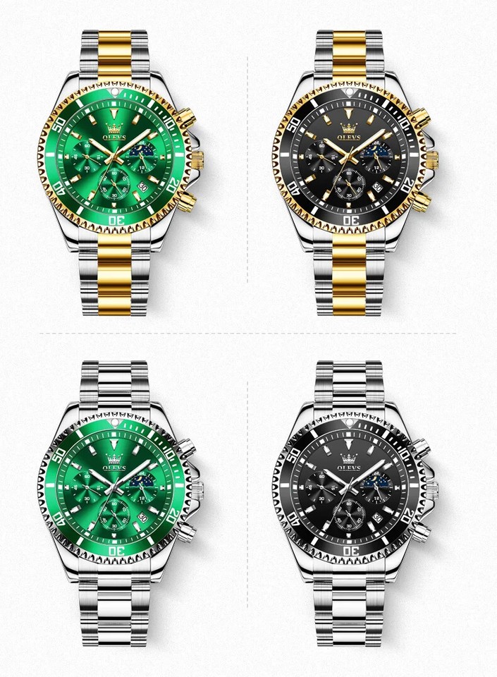 OLEVS Men Luxury Watch Waterproof Diver Quartz Chronograph Stainless Steel BOXED