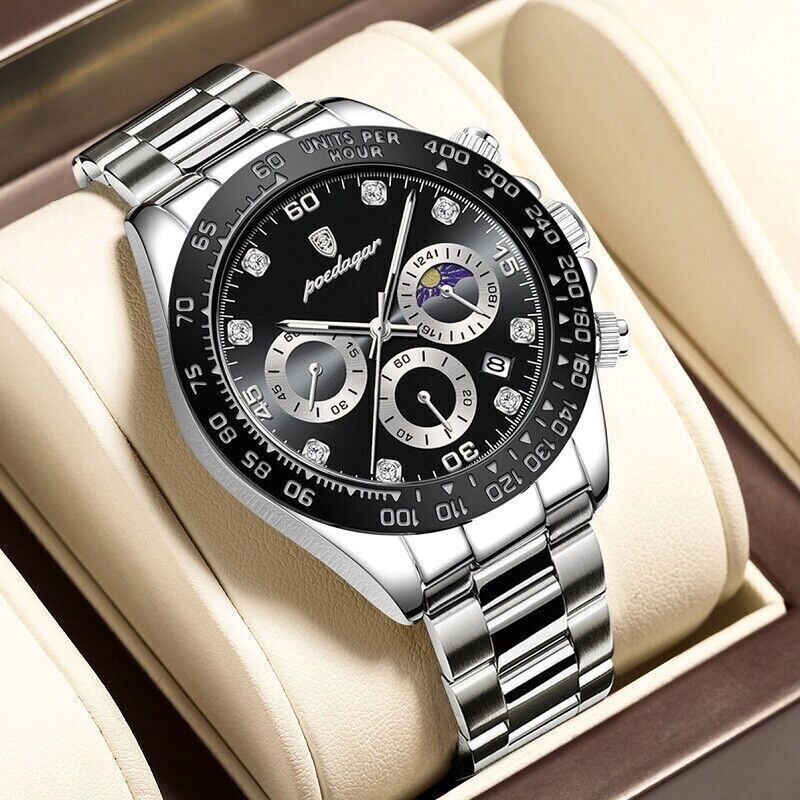 Quartz Luminous Chronograph Steel Wristwatch Waterproof Business Men Watch Gifts