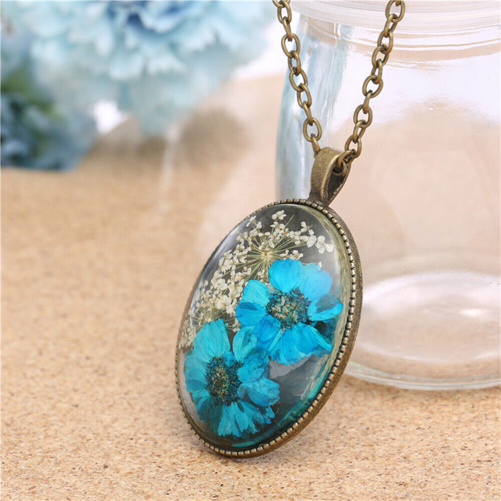 Charming Vintage Oval Delicate Dried Flower Women Necklace Jewelry Gifts