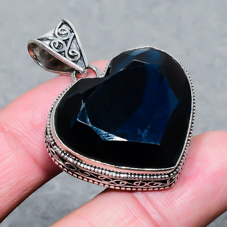 Faceted Iolite Heart Shape Gemstone Handmade Gift Vintage Jewelry Pendant 1.90″