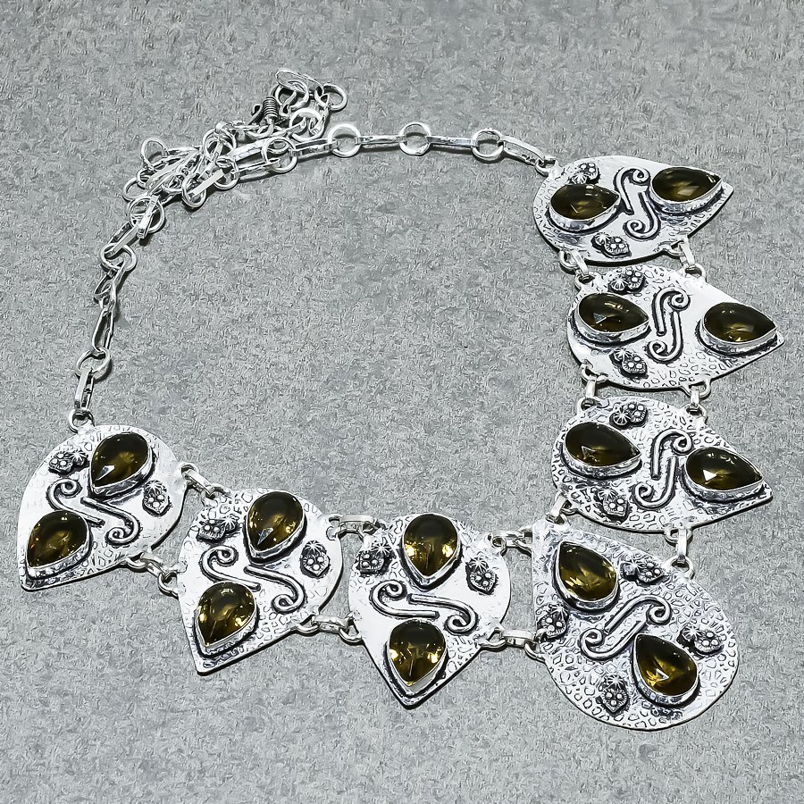 Faceted Smoky Quartz Pear Shape Gemstone Handmade Vintage Jewelry Necklace 18″