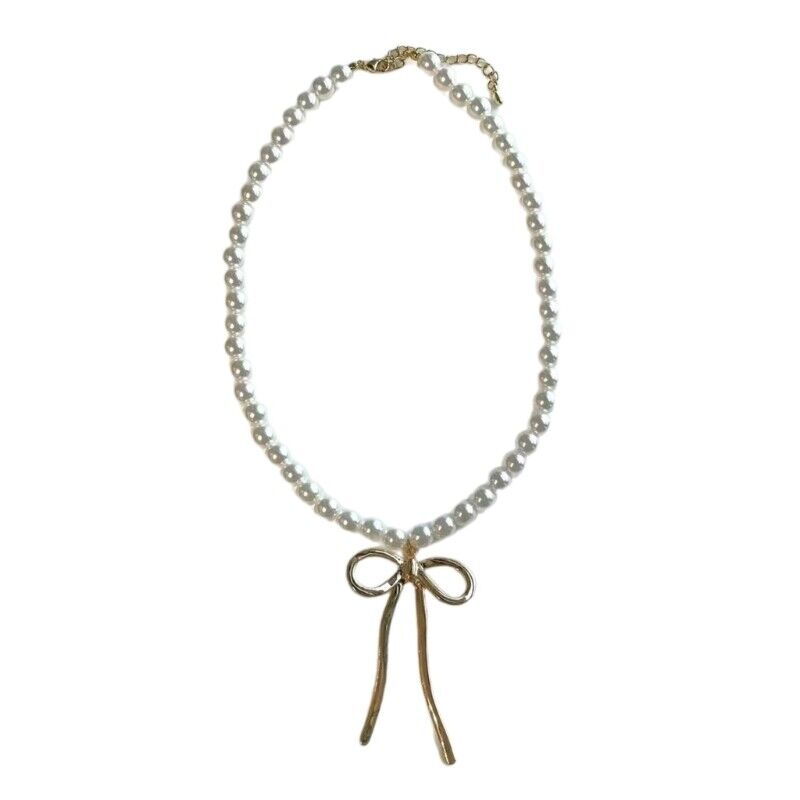 Imitation Pearls Bead Necklace for Women Vintage Bowknot Clavicle Chains Jewelry